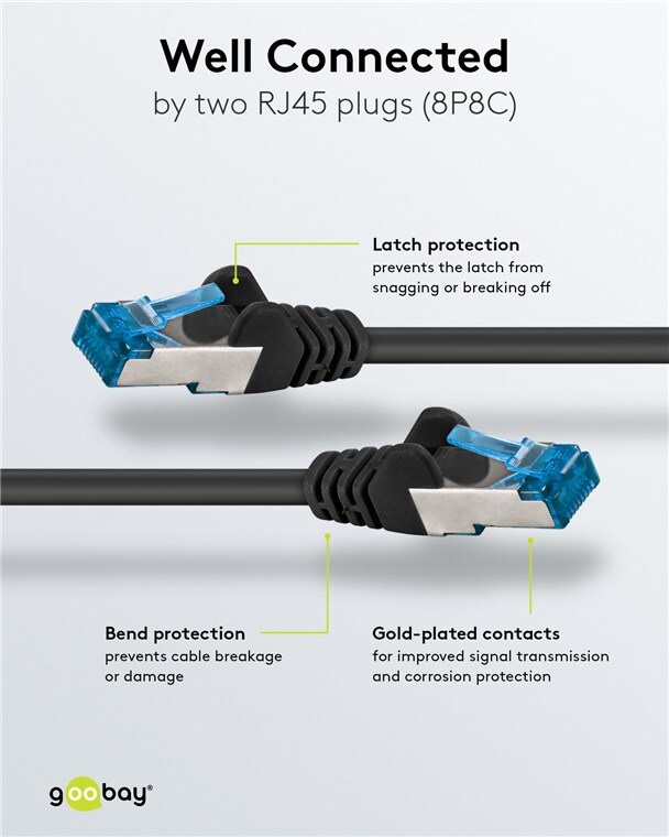 - Bend protection and a sturdy jacket effectively protect the Ethernet cable from breakage.