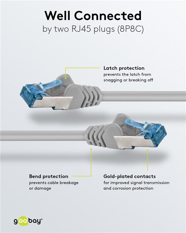 - High-quality copper conductor (CU) and 3µ gold-plated contacts guarantee an excellent, powerful network connection.