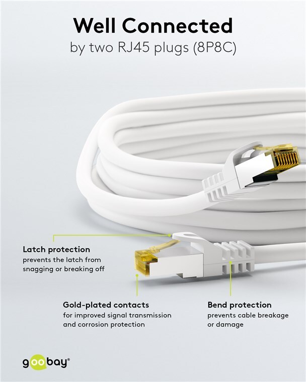 - High-quality copper conductor (CU) and 50µ gold-plated contacts guarantee an excellent, powerful network connection