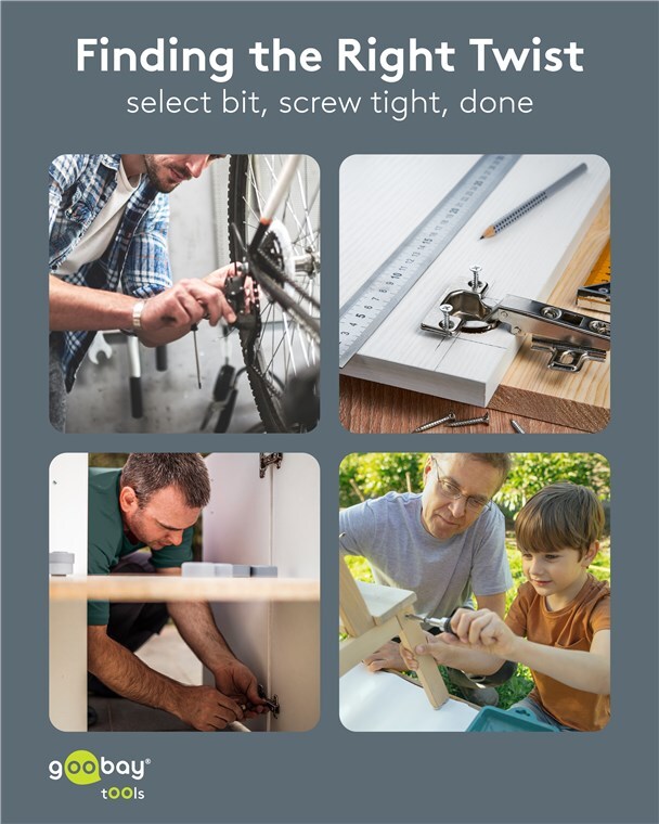 - Precision bits with a diameter of 4 mm and a length of 28 mm, with type identification on the bit and angled slots in the box for a better overview