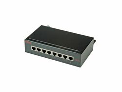 Patch panel 8port cat.5e, tienený s uzemnením, celokovový, montáž na stenu, 1U, sivý