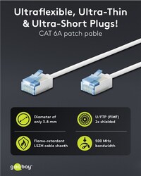 U/FTP (PiMF) Patchkábel LSOH 0.15m cat.6a, biely, slim, Cu, Flex Cable, Component Level