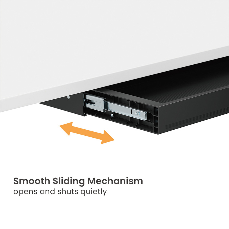 Ultratenký dizajn tejto zásuvky pod stôl ponúka veľký úložný priestor, v ktorom budete mať poznámky, telefóny, notebooky a ďalšie veci na dosah ruky bez toho, aby obmedzoval priestor na nohy. Zásuvka sa otvára a zatvára potichu a ľahko. Perfektný organizačný doplnok pre každý stôl!